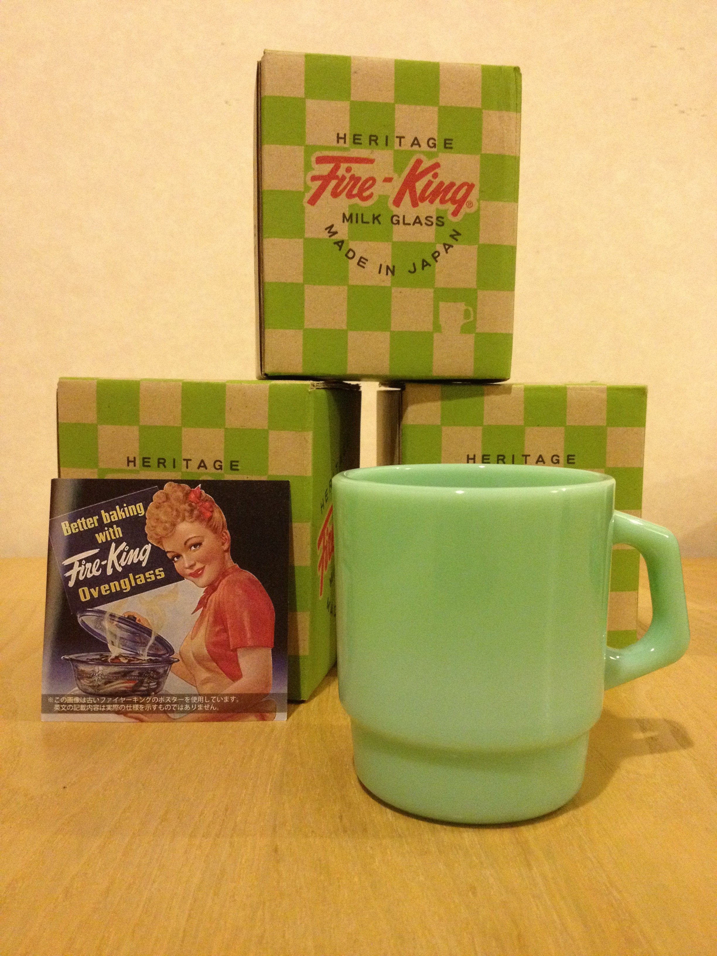 Fire-King Japanが復刻させたジェダイカラーのスタッキング・マグを、代官山のMid-Century MODERNで購入しました。